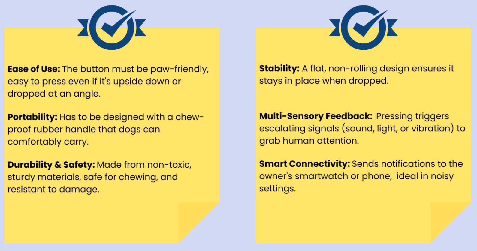 With this prototype, we validated the core idea, helping dogs get their owners’ attention in a clear, intuitive way. While there's room for future refinement, this concept prototype marks the completion of our design journey.
